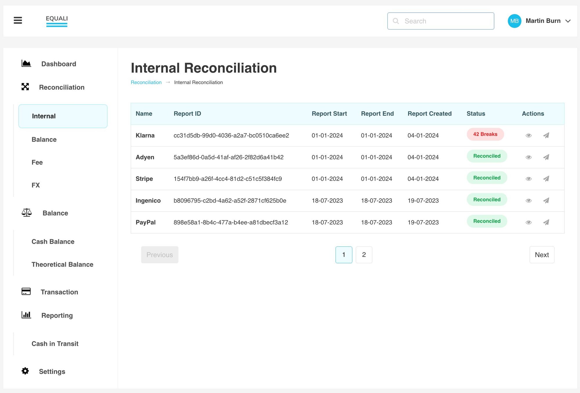 Automate your internal controls and offer our white-label reconciliation and reporting dashboard to your own customers to enhance customer value and generate revenue.